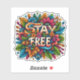 A vibrant explosion of colours showcases beautiful flowers and leaves surrounding the uplifting phrase urging everyone to stay free.