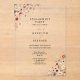With a harmonious blend of fun, whimsical, and formal aesthetics, this design balances classic and modern elements, offering minimalist calligraphy alongside lively bursts of rainbow wildflower elements. Whether your style leans toward traditional, neutral, and simple or embraces a bright and playful palette, this design seamlessly complements any wedding theme.