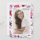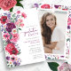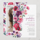 Colourful Floral Graduation Party Invitation. Set the stage for an unforgettable celebration with this elegant graduation party invitation, featuring a pristine white background, deep burgundy text, and a beautifully designed layout. Vibrant watercolor florals in rich jewel tones—pink, deep reds, burgundy, blues, and purple—accented with lush emerald greenery and eucalyptus add a stunning seasonal touch. A coordinating pattern on the back enhances the design, while a dedicated space for one cherished photo makes it even more personal. Whether you're planning an intimate gathering or a lively celebration, this invitation is the perfect way to honour your achievement and invite loved ones to share in your special moment.