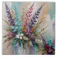 Beautiful Colourful Floral and leafy arrangement on distressed textured beachy colour background of light blue, beige, Lavender and white lines