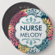 Colourful Floral Pattern RN Name 6 Inch Round Button