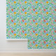 Colourful Floral Retro Cute Funny Pastel Teal Blu Wallpaper