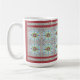 Resembling Pennsylvania Dutch designs as well as quilt squares, this adapts well to a large mug. This pattern is also available in other colours and with variations, as a cutting board, tray, lamp, magnet apron, fabric and more.,
