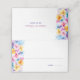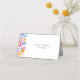 Modern colourful floral wedding table place card that includes the bride and groom's names along with their wedding date.