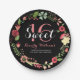 Colourful Floral Wreath On Black Sweet 16 Paper Plate