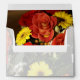 A bright and colourful slightly transparent flower bouquet background fills the outside of the envelope design and the same full opacity photograph fill the envelope inside. Click "Customize it!" to select a font style, size and colour you prefer to add any text.