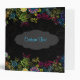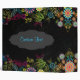 Colourful floral design on black background. Ornate frame for custom text. Text is on front and back. See more binders from ArtOnWear.