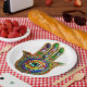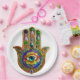 Colourful Flower Petals Turquoise Third Eye Hamsa Paper Plate