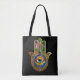 Colourful Flower Petals Turquoise Third Eye Hamsa Tote Bag