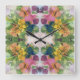 Colourful Flower Petals Watercolor Pattern Paintin Square Wall Clock