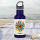 This pretty water bottle features a colourful flower on a light buttermilk cream background. In rich shades of. blue, yellow and red, the flower has a modern painted appearance. Personalize with a name or other text of your choice, which will be displayed below the flower.