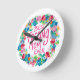 Colourful Flower Wreath Best F*cking Mom Ever Round Clock
