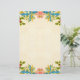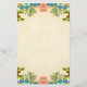 Beautiful stationary that has a floral border of pink, blue, yellow and red flowers on the top and bottom of the paper.