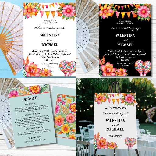 Celebrate your special day with our beautifully designed personalized Mexican Wedding Program Hand Fan, perfect for a vibrant and joyful fiesta wedding celebration. Featuring colourful pink and orange flowers with matching bunting flags against a crisp white background, this fan adds a festive and elegant touch to your ceremony. Adorned with floral patterned pink and blue maracas, each hand fan is a charming blend of tradition and style, ideal for keeping guests cool while sharing your wedding details. A perfect keepsake for your guests, this wedding program fan captures the spirit of your Mexican Wedding with warmth and colour.