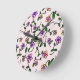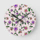Colourful Flowers, Floral Pattern, Greenery, Boho Round Clock
