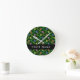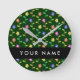 Colourful Flowers, Green Background, Black Round Clock