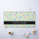 Colourful Flowers, Light Green Background, Black Desk Mat