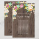 This rustic wedding invitation suite features a wood grain background with a delicate arrangement of colourful flowers at the top.