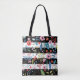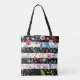 Colourful Flowers Over Black & White Stripes Tote Bag