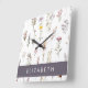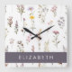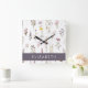 Colourful Flowers, Wildflowers, Greenery, Your Nam Square Wall Clock
