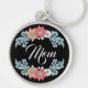 Stylized flowers in peach, white and teal with Mom text key chain.