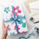 Colourful flowers on a white background, this wrapping paper features a bright design. With blue, white and pink flowers, choose from a variety of wrapping paper sizes. Order yours today!