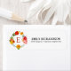 Cute colourful flowers wreath accented with green leaves over white background. Customizable return address label template