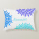 Stylish yoga pillow done in white, with lavender, blue and aqua flowers. Aqua custom text is ready to personalize to read what you want.