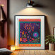 Colourful Folk Floral Joy Quote Dragonflies Fun Poster