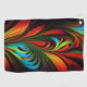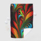 A flowery fractal design in many colours--red, green, and yellow--on a black background makes a splash on this golf towel.