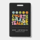 Colourful Fun Fourth Grade Teacher Custom Name Badge