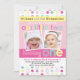 This Colourful Fun Twin Girls First birthday invitation features multi-colour polka dots and is perfect for your twin girls' first birthday.