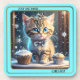 Funny coaster featuring a colourful winter image of a kitty, contemplating another drink (or two ...) Nice as a winter birthday or Christmas gift.