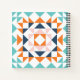 This fun design features a modern geometric barn quilt block in a fresh colour palette of cute retro style colours including turquoise, orange, navy blue, and blush pink, personalized with your name.