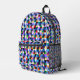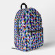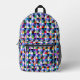 This allover print backpack features a vibrant geometric pattern that is perfect for adults and school children, ensuring their essentials can be carried with style and comfort. Designed for practicality, this backpack features adjustable padded shoulder straps, a spacious interior, a mesh side pocket, and an internal identification label. It offers ample storage space for books, snacks, and other essentials without compromising on its lightweight structure.