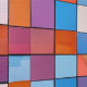 This wallpaper features a pattern of vivid and colourful geometric shapes.