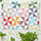 A pattern of geometric pinwheels form a quilt-like tapestry of colour. Both modern and vintage at the same time. Versatile and classic.