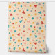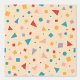 A lively pattern of geometric shapes, including circles, triangles, and squares in vibrant shades of red, blue, yellow, and pink. The playful design stands out on a soft beige background, perfect for fun, modern products or stationery.