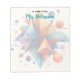 Personalized notepad with vibrant geometric shapes. Ideal teacher appreciation gift, customizable with teacher’s name. Perfect for classroom or home use.