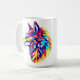 A bold and vibrant geometric wolf illustration featuring bright neon colours and sharp abstract shapes. Perfect for animal lovers, streetwear fans, and modern art enthusiasts.