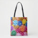 Features a collage of gift bows in many colours of blue, pink, gold, orange and green. A cheerful tote for any need.