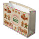 This fully customizable gift bag printed with colourful gingerbread steam trains cartoons, airplanes, cute dancing gingerbread boys and girls makes the ideal wrapping for any Christmas gift. Personalize it on both sides with your own texts and surprise someone special with your originality!