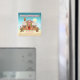 This cute magnet featuring a gingerbread house with a gingerbread cat on the rooftop, a gingerbread man with Xmas hat and a gingerbread lady in party dress makes a perfect addition to any fridge during Christmas season. Customize it today for someone dear with your own personal message and name(s).