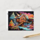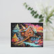 Colourful gingerbread treehouse christmas holiday postcard