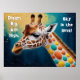 Colourful Giraffe on Blue for Young Animal Lovers Poster
