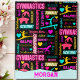 Colourful Girls Gymnastics Glossary Typography design that is loaded with bright colour, delightful fonts, gymnast silhouettes on floor, balance beam, vault and bars. Features many common gymnastics words every gymnast will be familiar with. Also includes tiny doodle hearts, flowers and other small details to keep this design bursting with delight all over! This popular design is now here in it's 2.0 pattern version and can be personalized with the name of your gymnast!