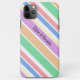 Personalized iphone case with pretty diagonal stripe pattern. The template is set up for you to add your name (or custom text) in whimsical typography. The design features pastel stripes in peach, green, pink, blue, purple, yellow and white. Whilst designed for the 11 Pro Max, it will fit many other models. If you choose a different model and it doesn't look perfect in the preview, please message me for assistance.