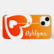 Colourful Girly Yellow and Orange Ombre Monogrammed Case-Mate iPhone 14 Case. Retro ombre gradient in summer orange and sunny yellow with a trendy white heart graphic.