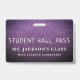Purple violet amethyst metallic faux glitter background seems to sparkle—but, it's an enhanced photograph designed by Los Angeles artist, Rozine. Student hall pass information can easily be updated to list the purpose of the badge, the teacher's name, and school. Available in many other sparkly colours and designs. Simple and straight to the point! Also....... so sparkly! OMG. Yes, Queen.