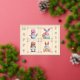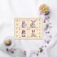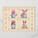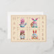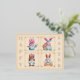 This is a post card with real foil on the front. The back is blank and ready for your personal messaging, but the front carries four adorable gnomes, each wearing their own bunny ears and holding Easter eggs, sitting with a rabbit, an Easter basket, or holding a newborn Easter chick. Foil frames surround each gnome, and foil lettering runs down each side of the post card wishing the recipient a "Happy Easter", with a foil frame around the entire design. Feel free to change the card background colour and foil colour too. Unique in every way!